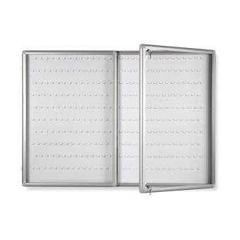 Gablota na klucze GO10-KL z nadrukiem przygotowanym według wytycznych klienta. Wymiar gabloty 70x150x10cm na z haczykami na 62 klucze