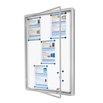 Oferujemy gabloty w różnych wariantach – wiszące, wolnostojące, jedno- lub dwuskrzydłowe, z możliwością montażu oświetlenia LED. Bez trudu można dobrać model idealnie pasujący do miejsca i jego funkcji – czy to do komunikatów ogólnych, czy do ekspozycji dyplomów, zdjęć, certyfikatów.